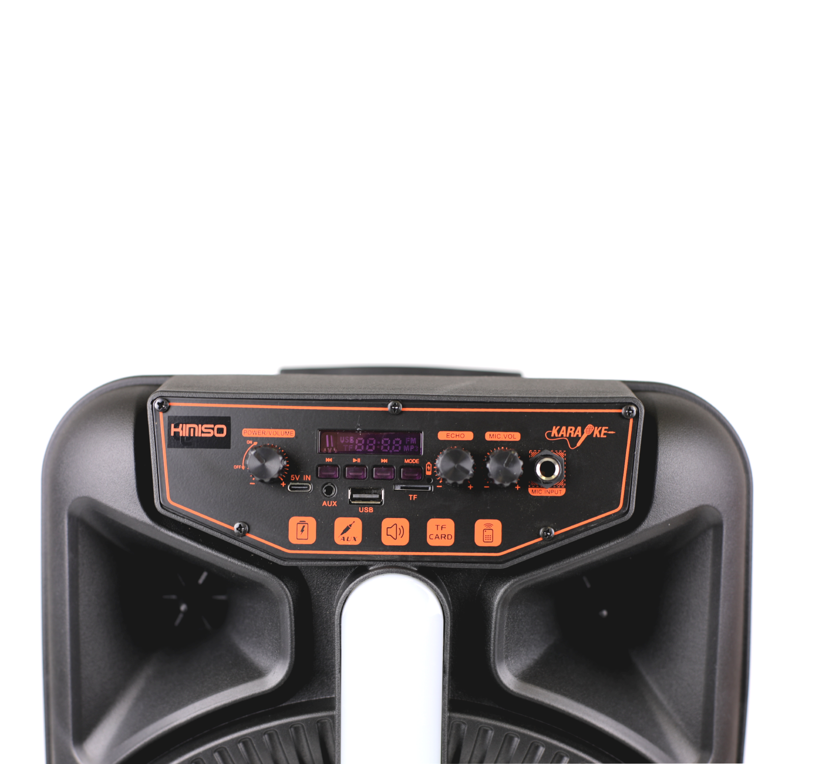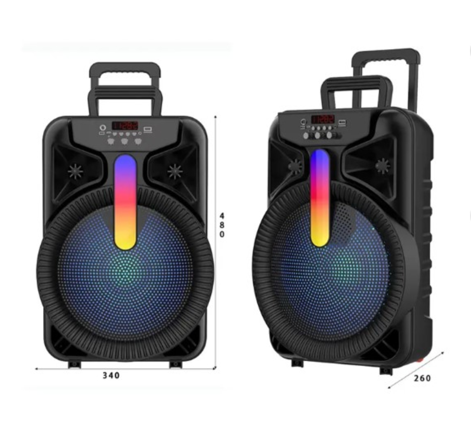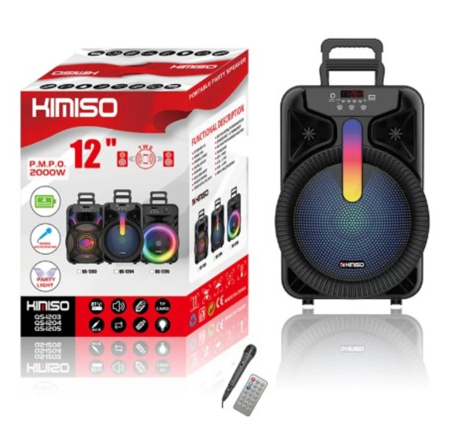 Акустическая колонка QS-1204 с поддержкой радио и блютуз. Здесь присутствуют кнопки подключения по Bluetooth, уменьшения/увеличения громкости, включения/выключения устройства, а также кнопка для активации следующего трека, постановки композиции на паузу. Для дополнительного удобства есть слоты для подключения AUX, USB и Micro SD. В упаковке имеется один беспроводной микрофон, кабель для зарядки и AUX кабель.