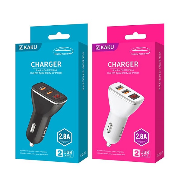 Автомобильное зарядное устройство KAKU KSC-527. Максимальная выходная мощность составляет 2,8А. Данное АЗУ обладает защитой от перенапряжения и перегрузки электричества. Это защитит устройство, которое находится на зарядке, от поломки.