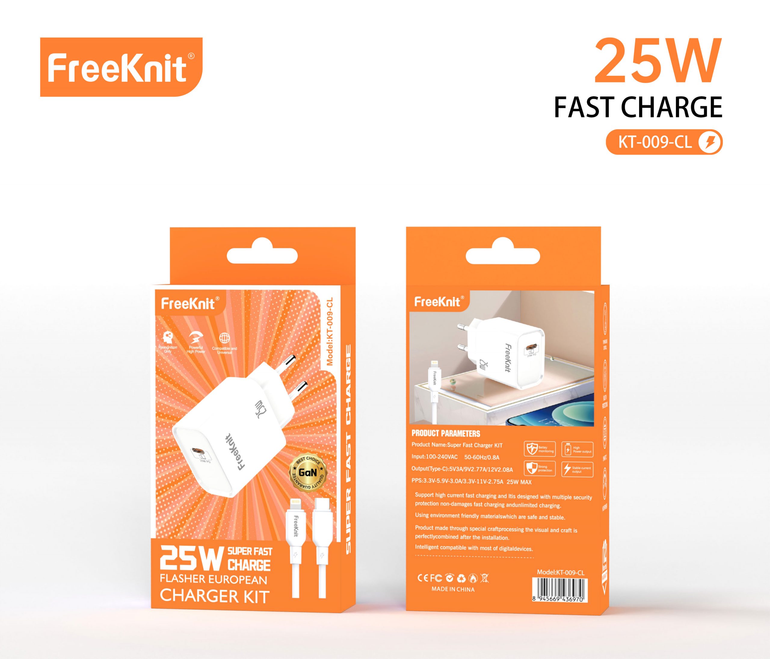 Блок freeknit 25w KT-009- Type-C To Lighting