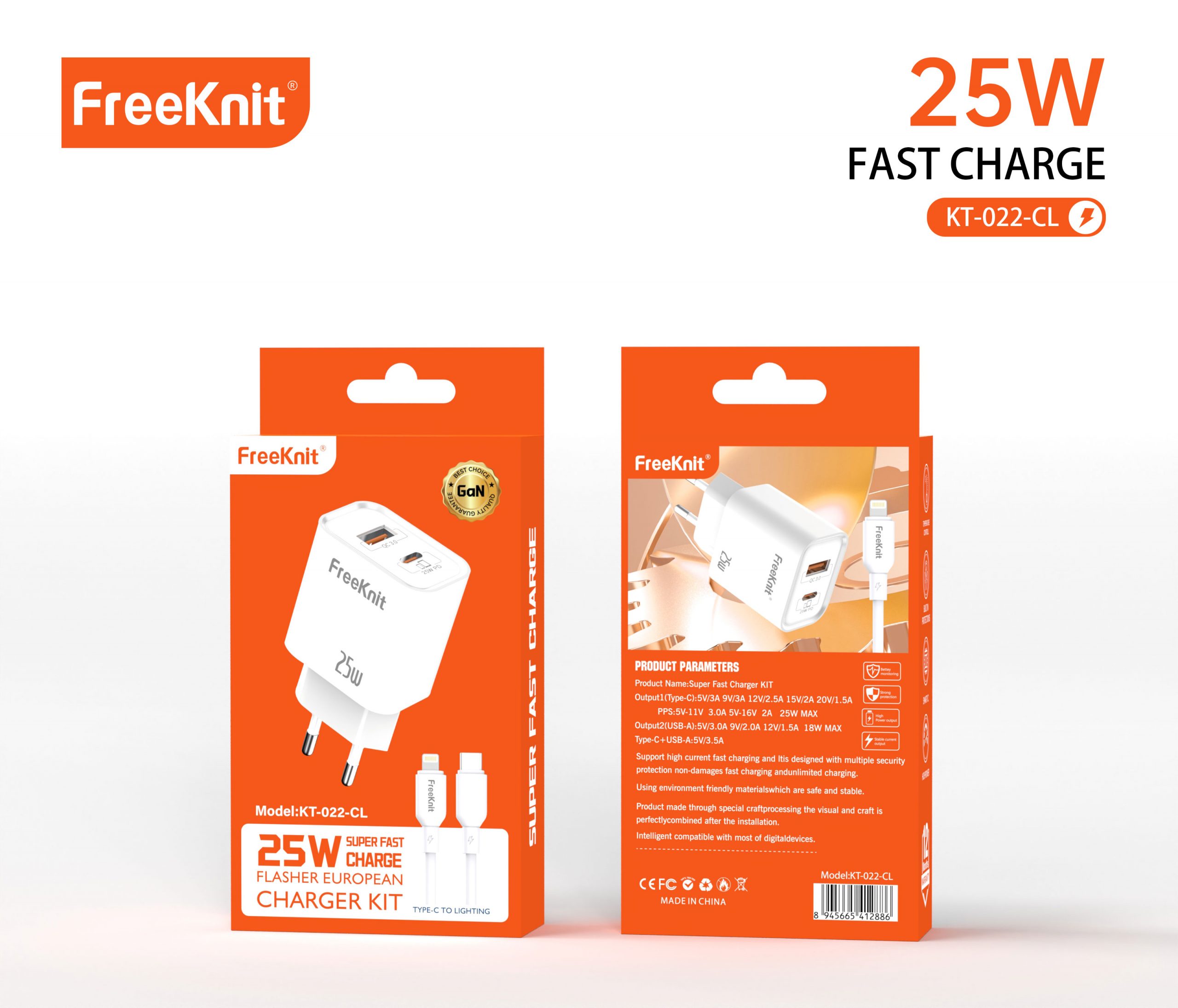 Блок freeknit 25w KT-022- Type-C To Lighting