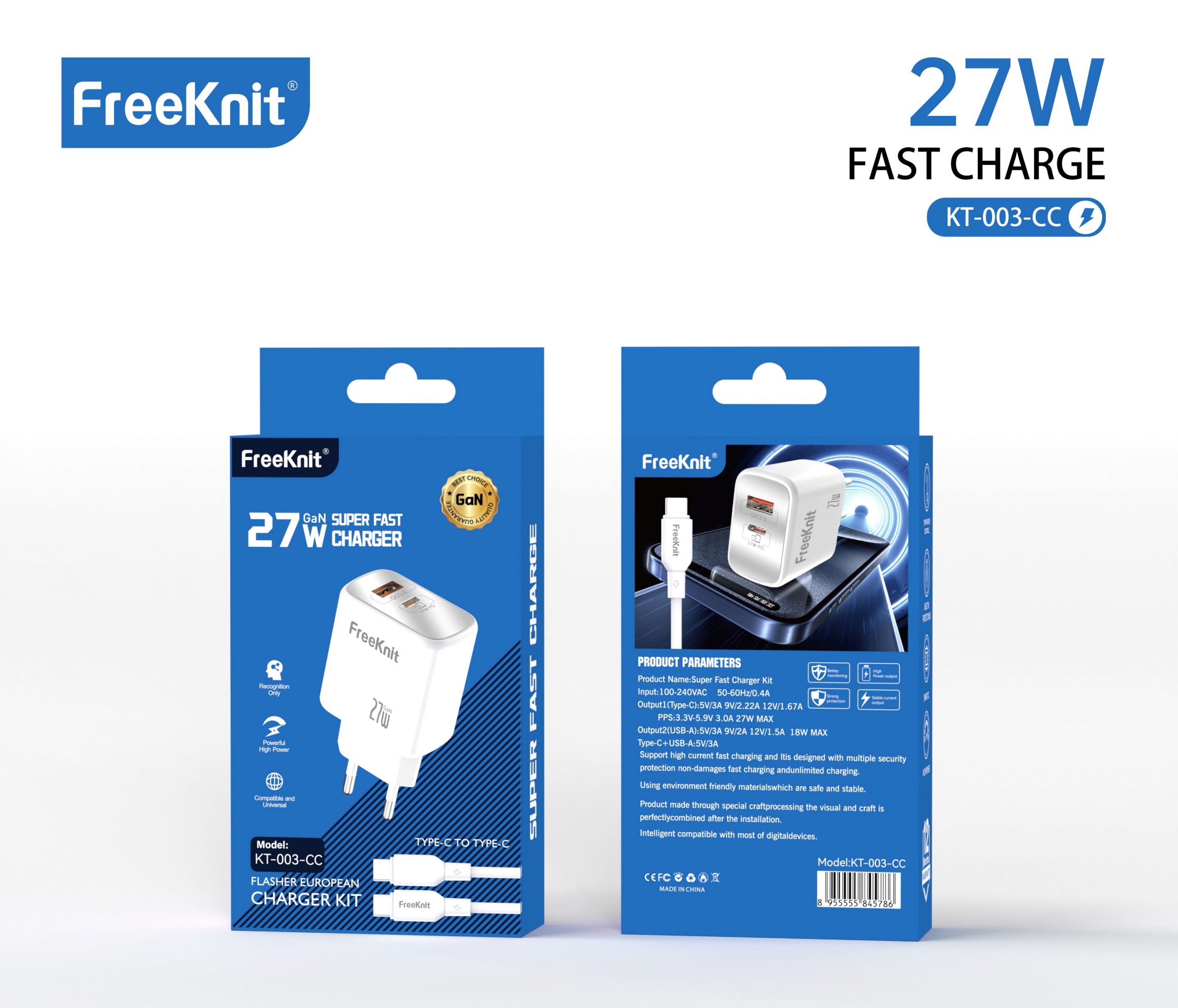 Блок freeknit 27w KT-003- Type-C To Type-C