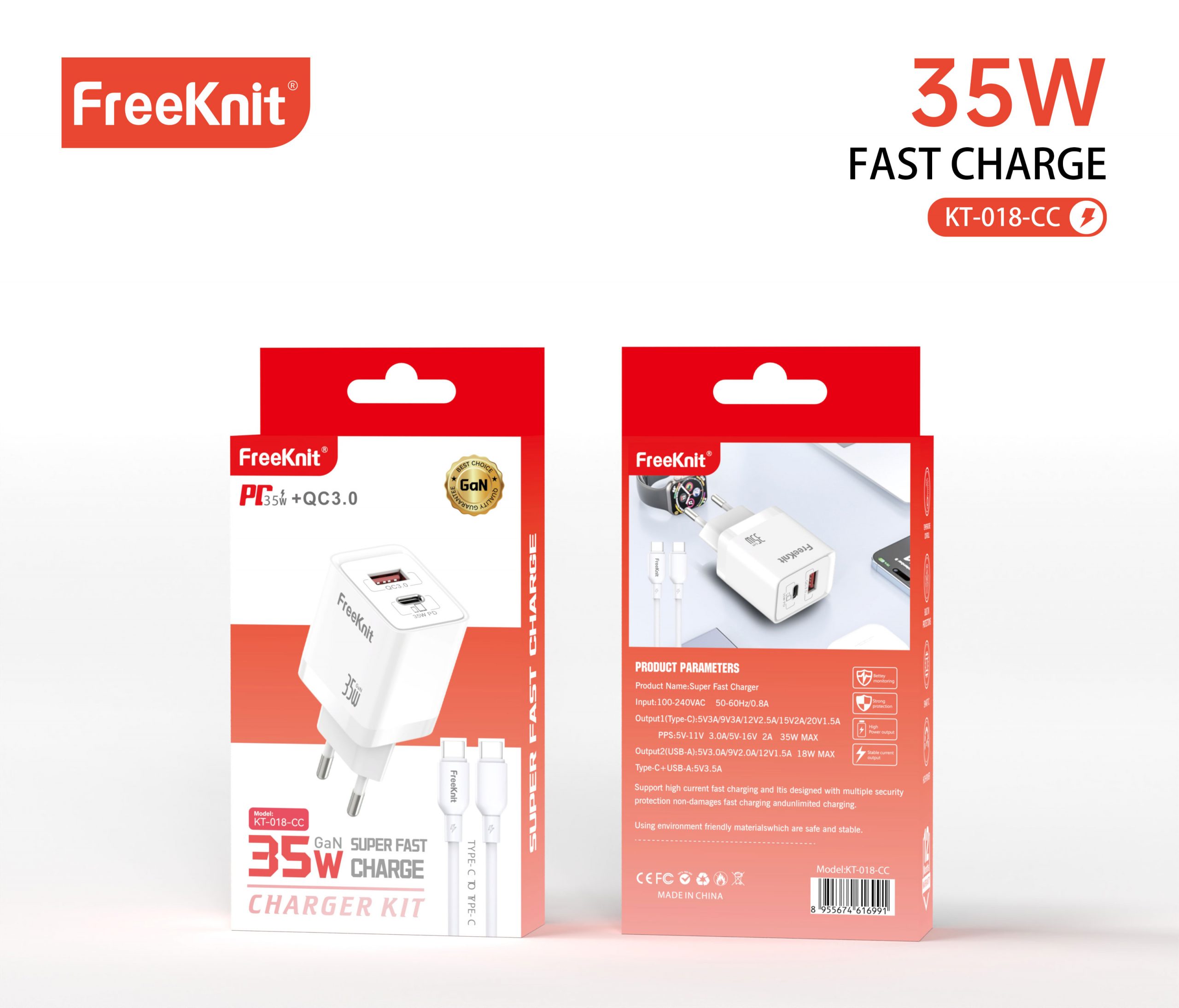 Блок freeknit 35w KT-018- Type-C To Type-C