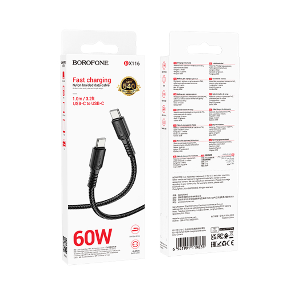 Кабель Borofone BX116 Type-C to Type-C