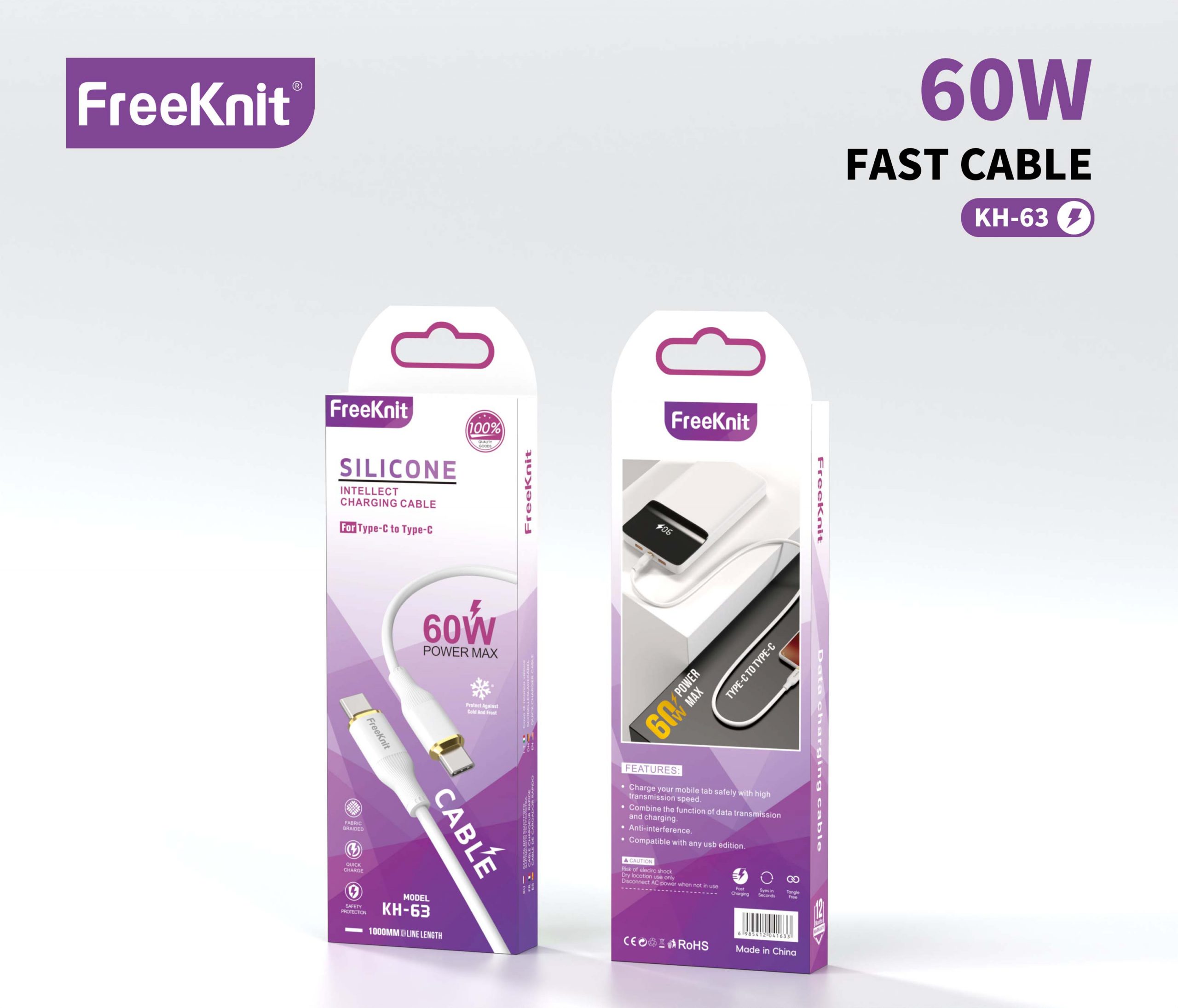Кабель FreeKnit Type-C to Type-C KH-63