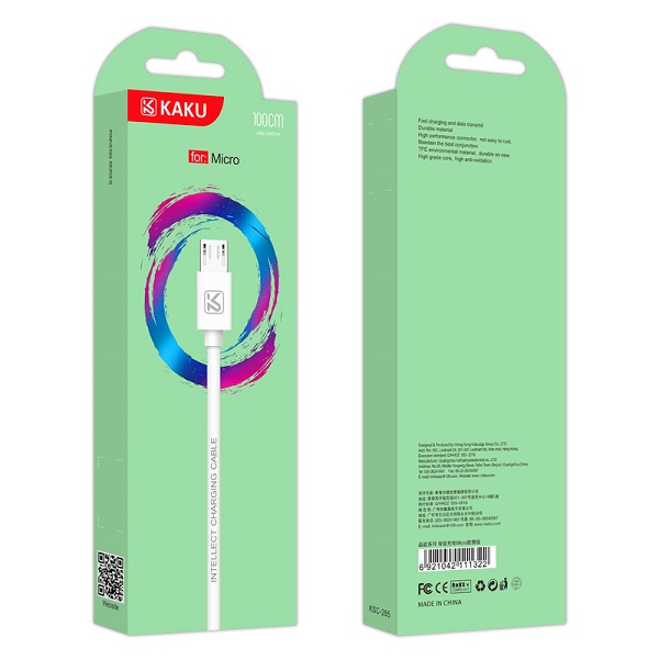 Кабель KAKU KSC-285 с разъемом Micro. Прочный кабель служит как для зарядки, так и для передачи данных. Длина кабеля составляет 1м. Максимальный проводимый ток 2.4А. Специальная оболочка предотвращает окисление и ржавчину. Надежная оплетка защищает от механических повреждений.