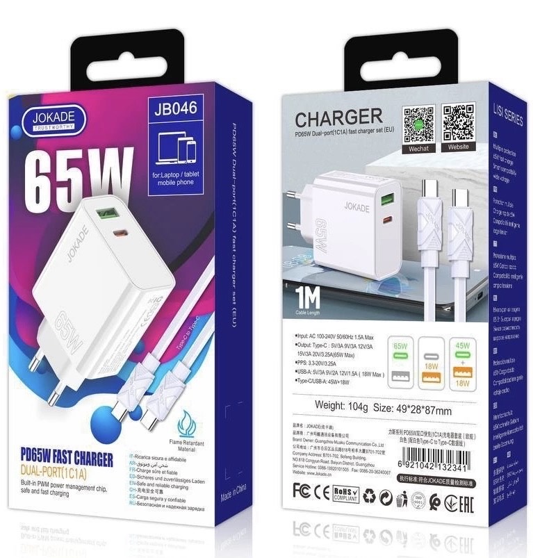 Зарядные устройства,Сетевые зарядные устройства,СЗУ Type C СЗУ JOKADE JB046 + Type-C 25121998439 JOKADE