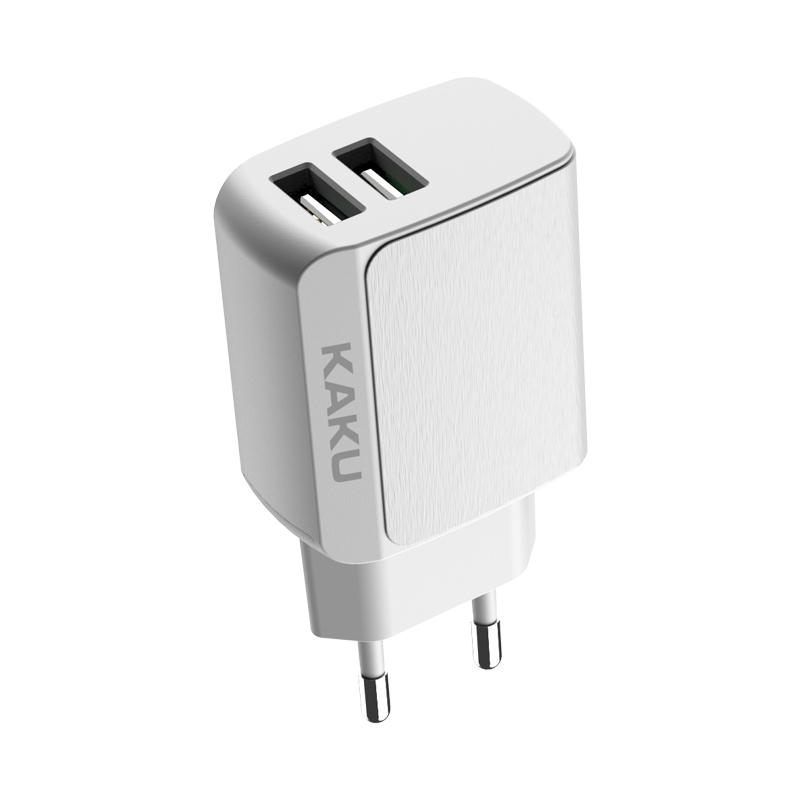 Сетевое зарядное устройство KAKU KSC-179. Максимальная выходная мощность составляет 2,4А. Данное СЗУ обладает защитой от перенапряжения и перегрузки электричества. Это защитит устройство, которое находится на зарядке, от поломки. Сам корпус сделан из огнестойкого прочного пластика. Имеет 2 выхода USB.