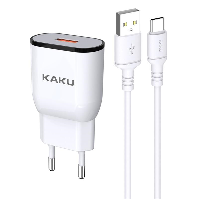 Сетевое зарядное устройство KAKU KSC-492. Максимальная выходная мощность составляет 2,4А. Данное СЗУ обладает защитой от перенапряжения и перегрузки электричества. Это защитит устройство, которое находится на зарядке, от поломки. Сам корпус сделан из огнестойкого прочного пластика. Имеет 1 выход USB. В комплекте так же идет кабель Type-C длиной 1 метр.