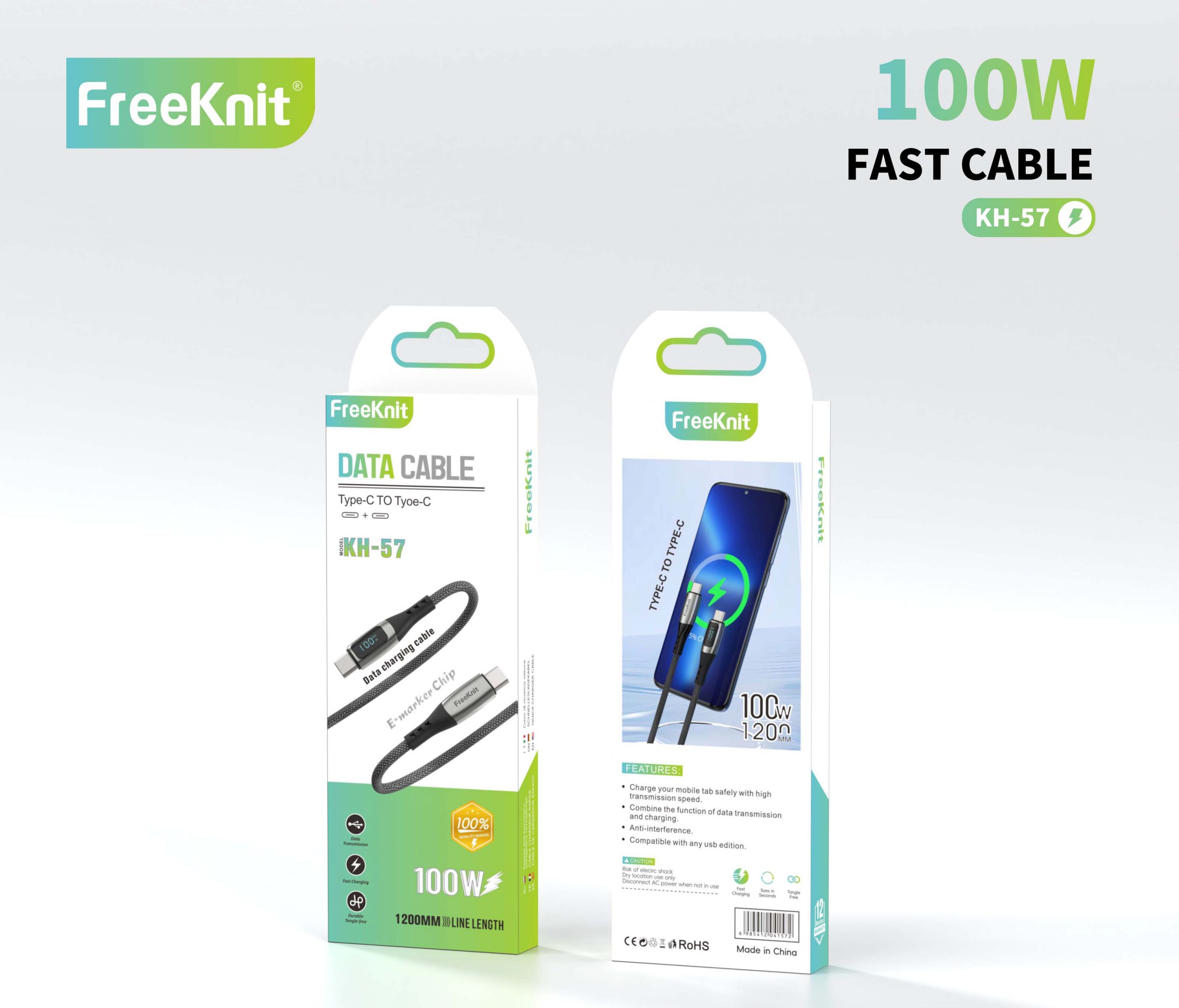 Зарядка Free Knit Type-C To Type-C KH-57
